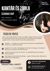 Kedves Lovasok! Különleges élményre hívunk benneteket, ahol a ló és lovas közötti kapcsolat középpontjába kerül a kantár és a zabla szerepe. Hogyan hat a felszerelés a ló kényelmére? Milyen apró változtatásokkal érhetünk el nagyobb összhangot és teljesítményt? Ezekre és sok más kérdésre kapjátok meg a választ közvetlenül egy holland szakértőtől, Tessa de Vrieze-től, aki évtizedek…